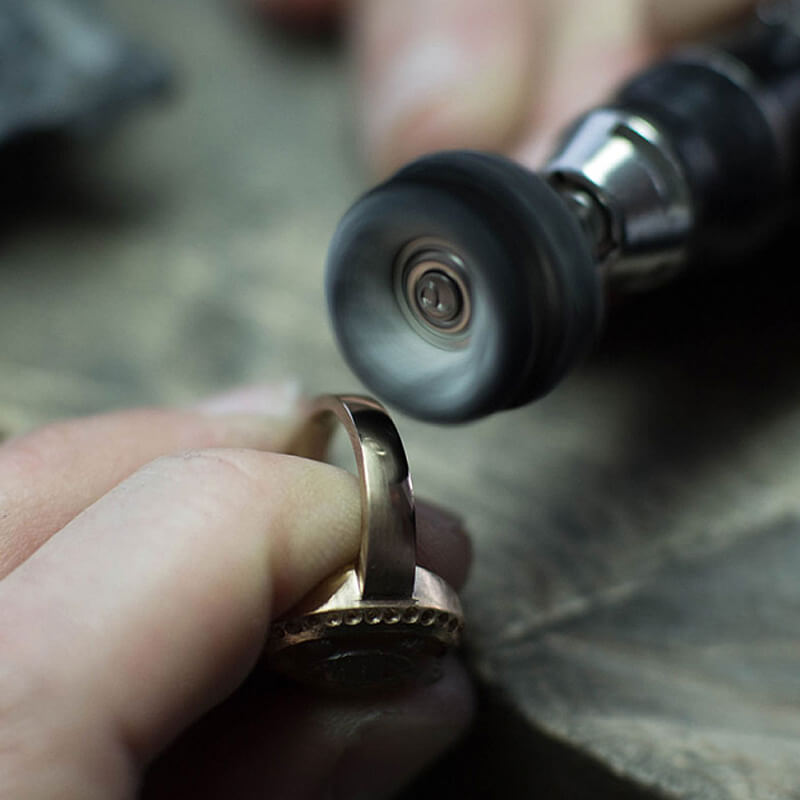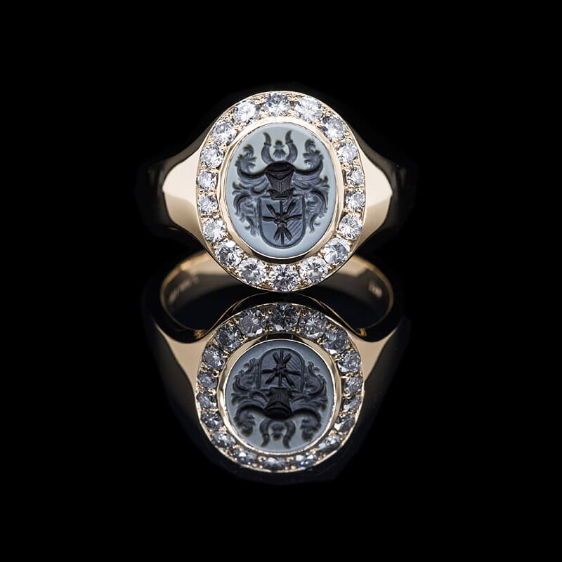 Ein alter Ehering wird zum Amulett – nah am Herzen getragen. Aus der Kugelkette eines Kindermädchens entsteht ein Armband mit Art-Déco-Anklängen und Spuren ethno-afrikanischer Formsprache. Die geerbte Brosche eines jungen Studenten wird zum Verlobungsring. Ein historisches Familienwappen findet seinen Platz – als wertvoller Siegelring.