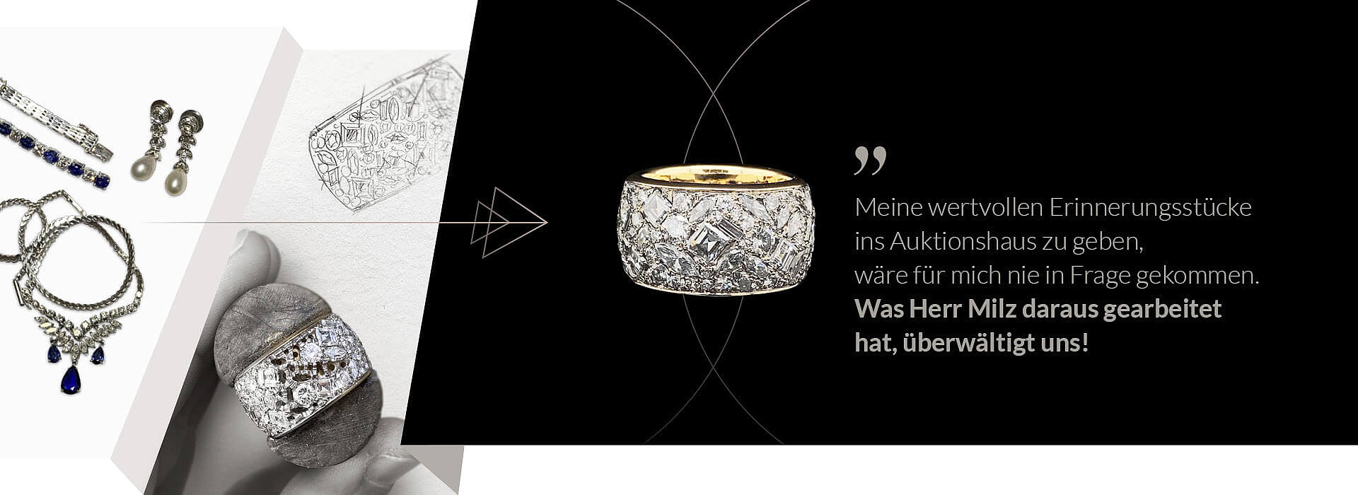 Die Aufgabe war so anspruchsvoll wie inspirierend: Aus einem reichen Fundus kostbarer Preziosen sollten unterschiedliche Schmuckstücke entstehen. Begleiter für den Alltag im Beruf. Elegante Akzente für ein Abendessen im Restaurant. Ausdrucksstarke Stücke für glanzvolle Anlässe – Opernabende, besondere Feste oder einen Besuch in der Elbphilharmonie. Schmuck für den besonderen Moment.