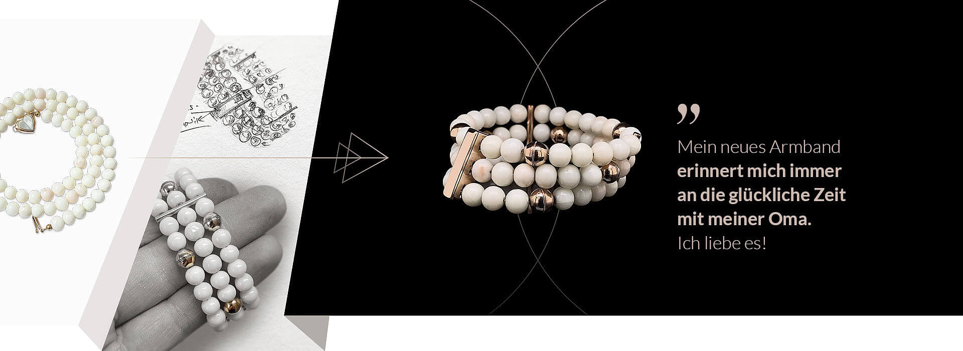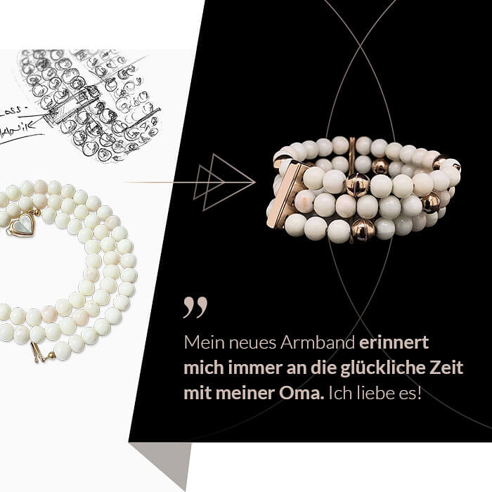 Fast jeder kennt den Moment, in dem ein geliebter Mensch ein Schmuckstück hinterlässt. Ein Objekt voller Erinnerung und Bedeutung. So war es auch mit einer weißen Korallenkette, die meine Kundin von ihrer Großmutter geerbt hatte. Das Herzschloss aus industriell gefertigtem Gold bewahrte den emotionalen Wert, doch es spiegelte nicht ihren persönlichen Stil wider. Die Kette blieb ungetragen und wartete auf eine neue Bestimmung.